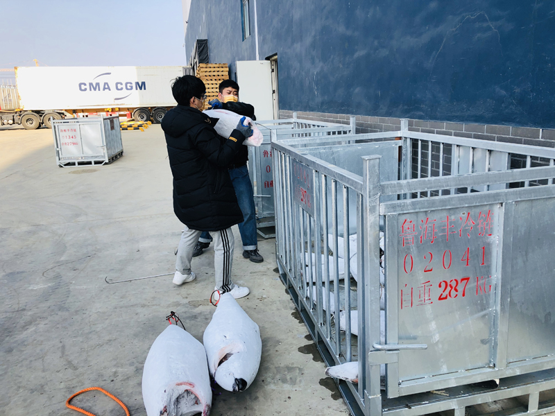 “來魚了,準(zhǔn)備卸魚!”一聲中氣十足的吆喝打破了冷庫的寧靜,隨著滿載超低溫金槍魚魚貨的貨車進(jìn)廠,卸魚人員摩拳擦掌、圍上前來,開始了新一輪的忙碌,冷庫里一派熱火朝天的工作景象。
